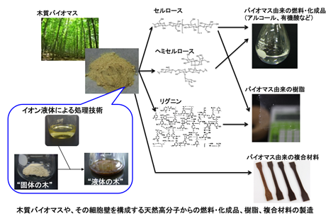 キーワード:木質バイオマス バイオマスリファイナリー イオン液体